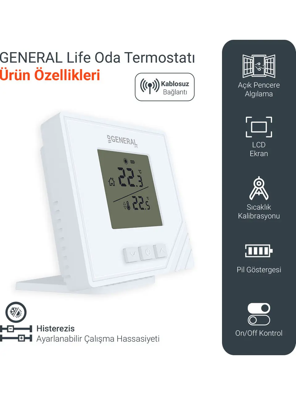 Oda Termostatı Kablosuz HT15 GENERAL teknik özellikleri aşağıda yer almaktadır.